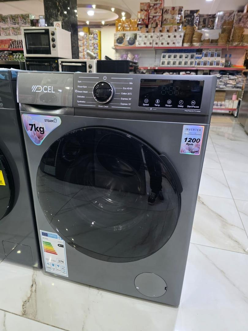 غسالة ديسل أنيقة بلون فضي، تحميل أمامي، مزودة بمحرك انفرتر وبرامج غسيل متطورة مع تشغيل هادئ وكفاءة عالية.