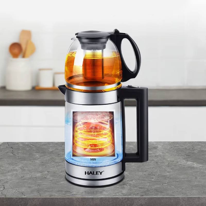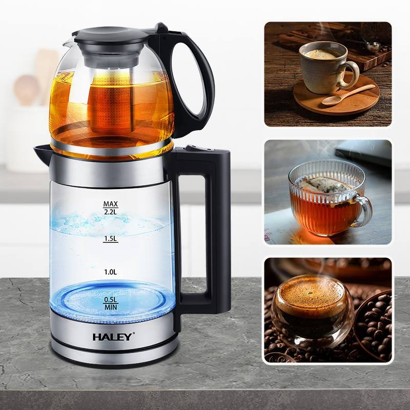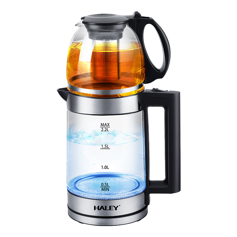 تقدم غلاية هالي الكهربائية تجربة مثالية لغلي الماء بسرعة وكفاءة مع تصميم مزدوج الطبقات يجمع بين الزجاج عالي الجودة والفولاذ المقاوم للصدأ، لضمان المتانة والأناقة.
