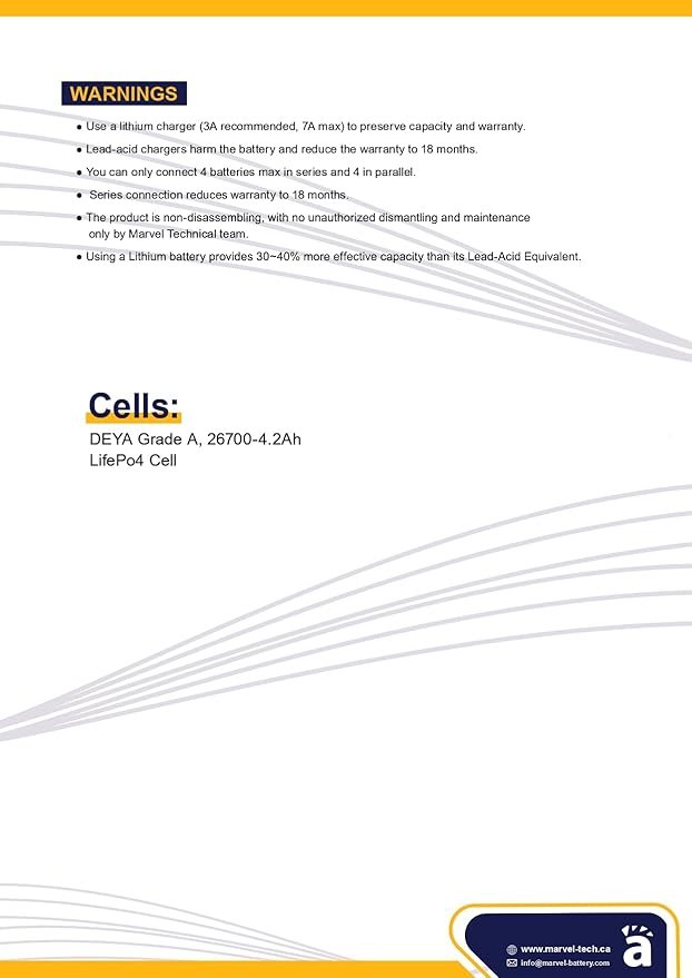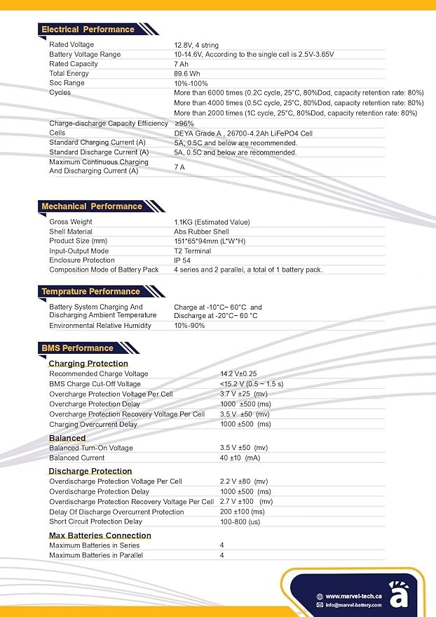 ✅ نظام إدارة مدمج (BMS): حماية من الشحن الزائد، التفريغ الزائد، الدائرة القصيرة، التيار الزائد، ودرجات الحرارة المرتفعة والمنخفضة