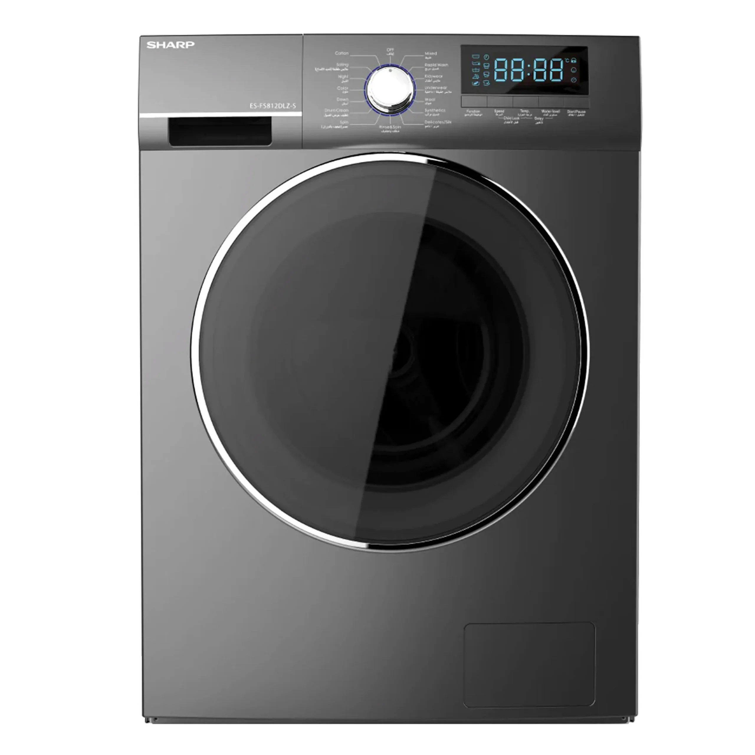 غسالة ملابس Sharp بسعة 8 كجم، 1200 دورة في الدقيقة، موفرة للطاقة A+++, 16 برنامج غسيل شامل، مزودة بتقنية Quick Wash، قفل للأطفال، وظيفة الغسيل المؤجل، تصميم فضي أنيق، صناعة صين