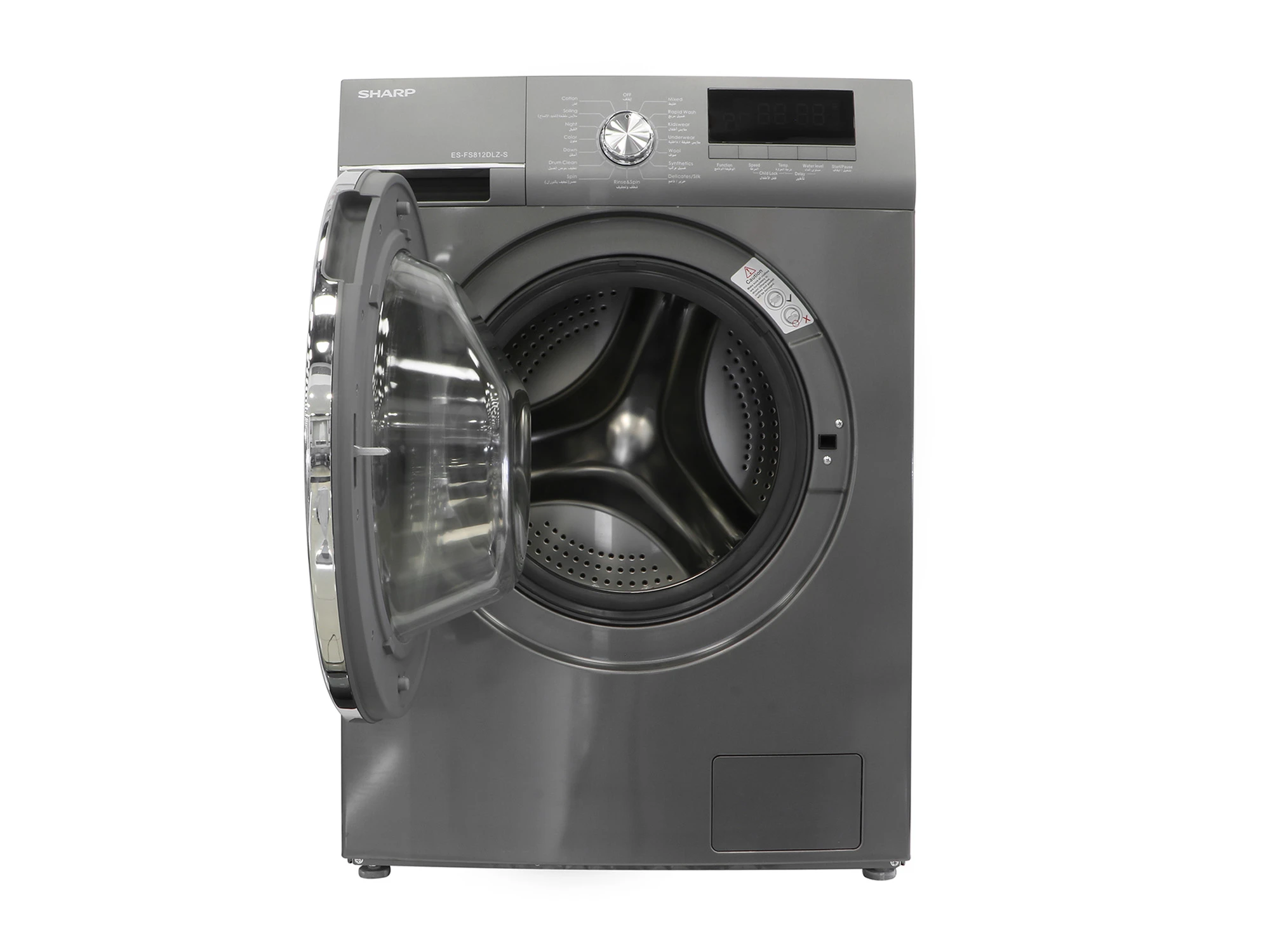 غسالة ملابس Sharp بسعة 8 كجم، 1200 دورة، تصنيف A+++, لون فضي