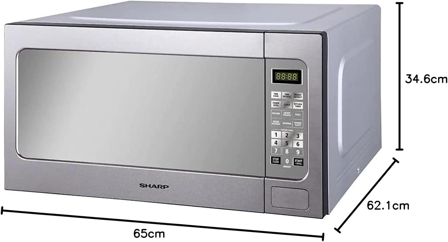 ميكروويف Sharp سعة 62 لتر، 1200 واط، 11 مستوى طاقة، ستانلس ستيل
